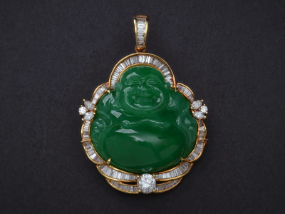 Full green jadeite reflecting the color of the moon, the jade is delicate and moist.